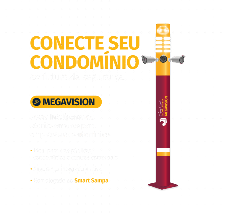 O Megavision é o poste inteligente de monitoramento da Megavig, projetado para oferecer segurança ativa e integrada a empresas, centros comerciais e condomínios.